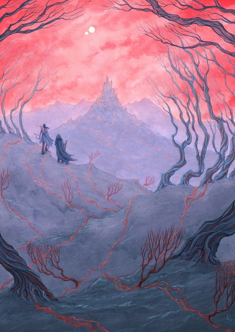 Je suis Marie Lagrange, artiste peintre et illustratrice. Mes peintures explorent des univers et paysages fantastiques, oniriques, à la fois sombres et colorés, où la nature et la spiritualité ont une place centrale (+ d'infos).